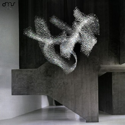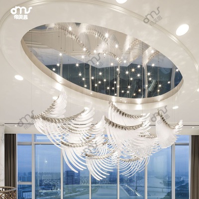 國外創(chuàng)意新款翅膀羽毛空中吊飾復(fù)式別墅酒店會所大廳售樓處吊燈