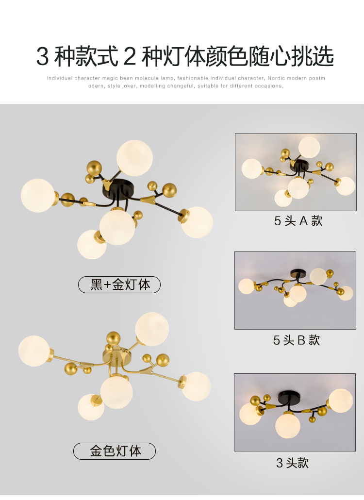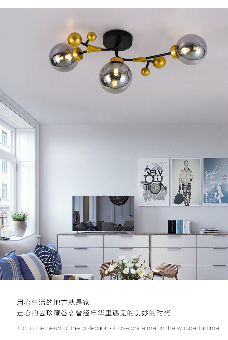 北歐輕奢溫馨浪漫主臥室房間吸頂燈工業(yè)風(fēng)客廳餐廳魔豆燈2019新款