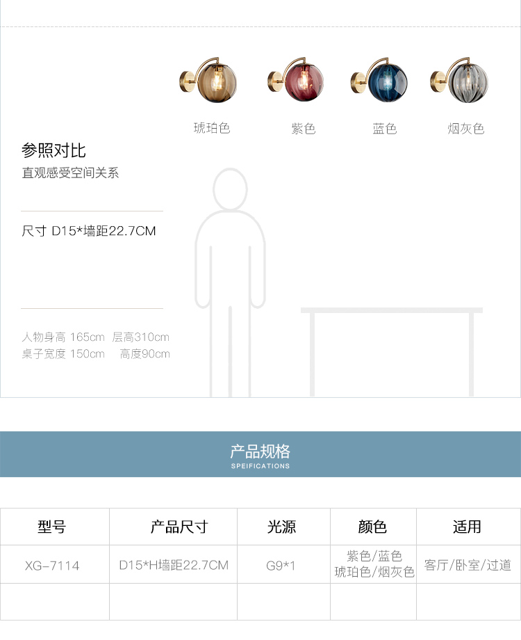 紫色,藍(lán)色,煙灰色,琥珀色,四色玻璃壁燈