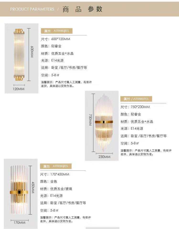 各式各樣水晶玻璃棒壁燈